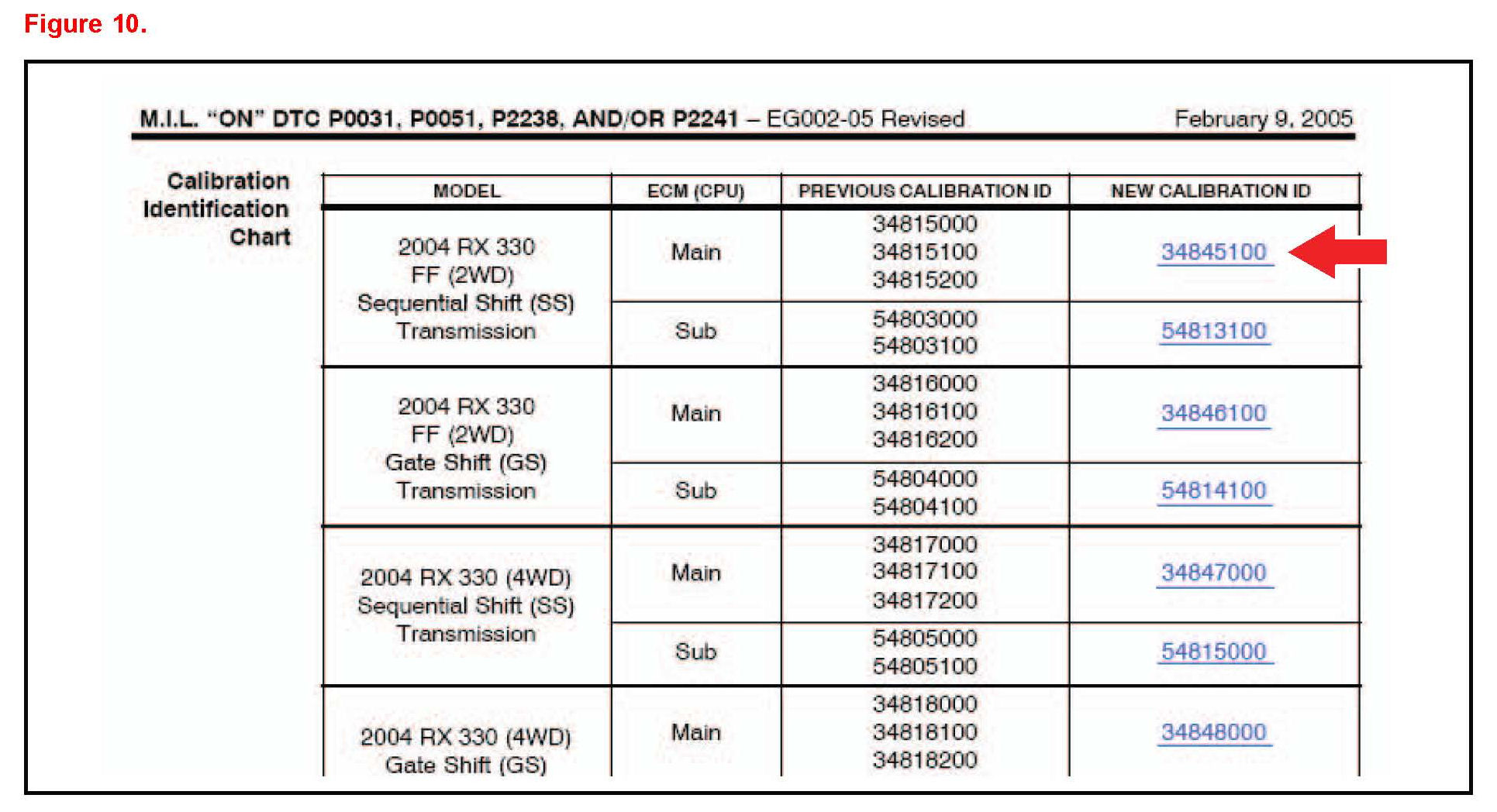 F. Available calibration updates are indicated by a link in the Cal. Update? column. Click the Yes link to access the appropriate service bulletin on TIS.