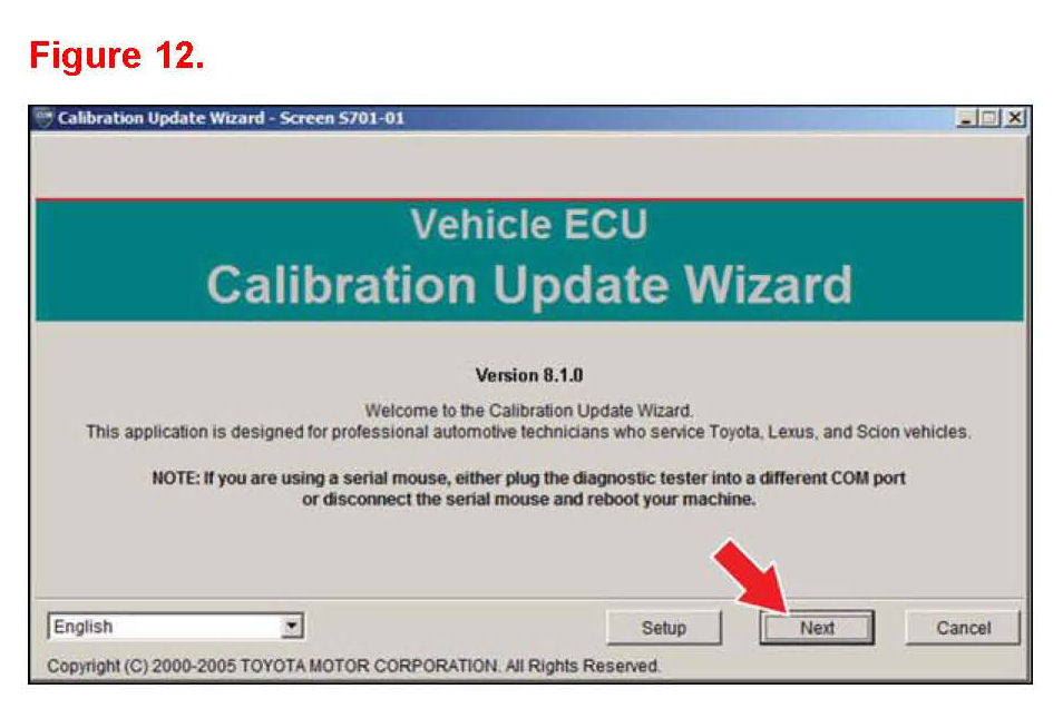 ^ Ignition is ON and engine is OFF or "READY" OFF (hybrid vehicles). Then click Next.