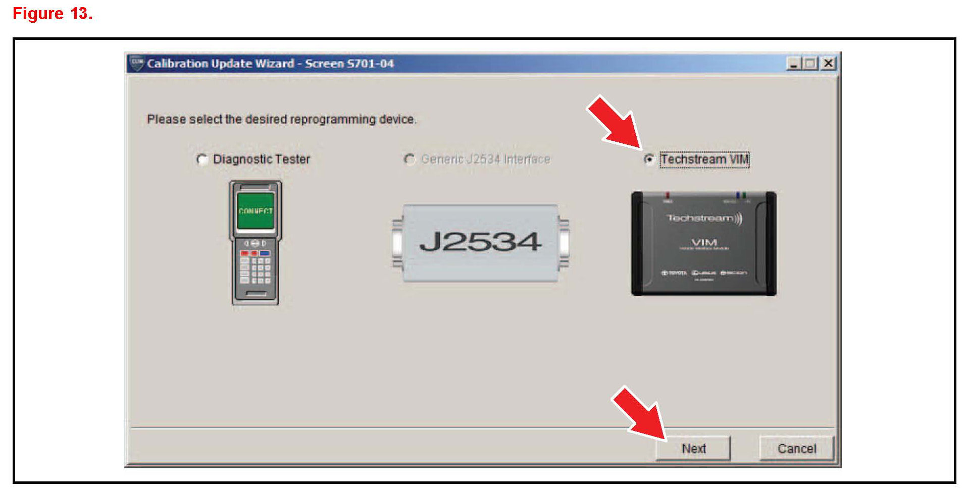 D. When using TIS Techstream select Techstream VIM as the desired programming device. Then click Next.