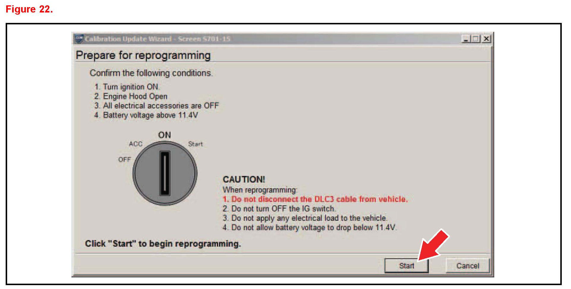 K. Turn ignition to the ON position. Then click Start.