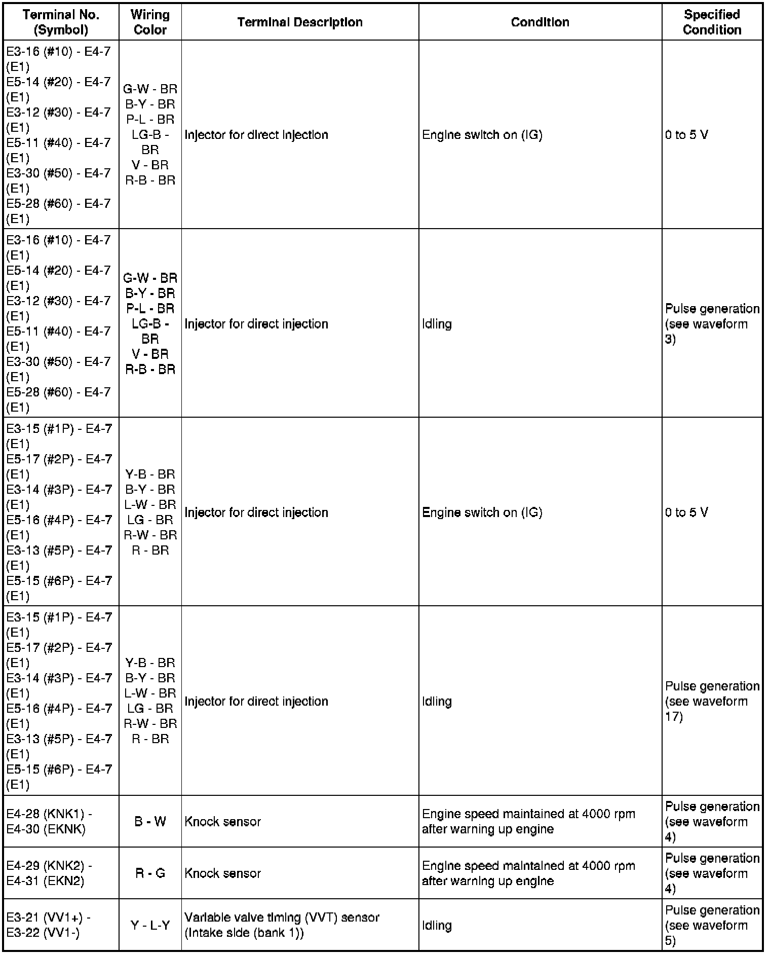 Injector for Direct Injection No. 1 (to No. 6) Injection Signal: