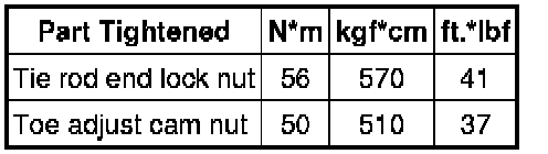 SPECIFICATIONS: ALIGNMENT / HANDLING DIAGNOSIS: TORQUE SPECIFICATIONS