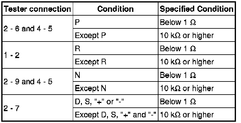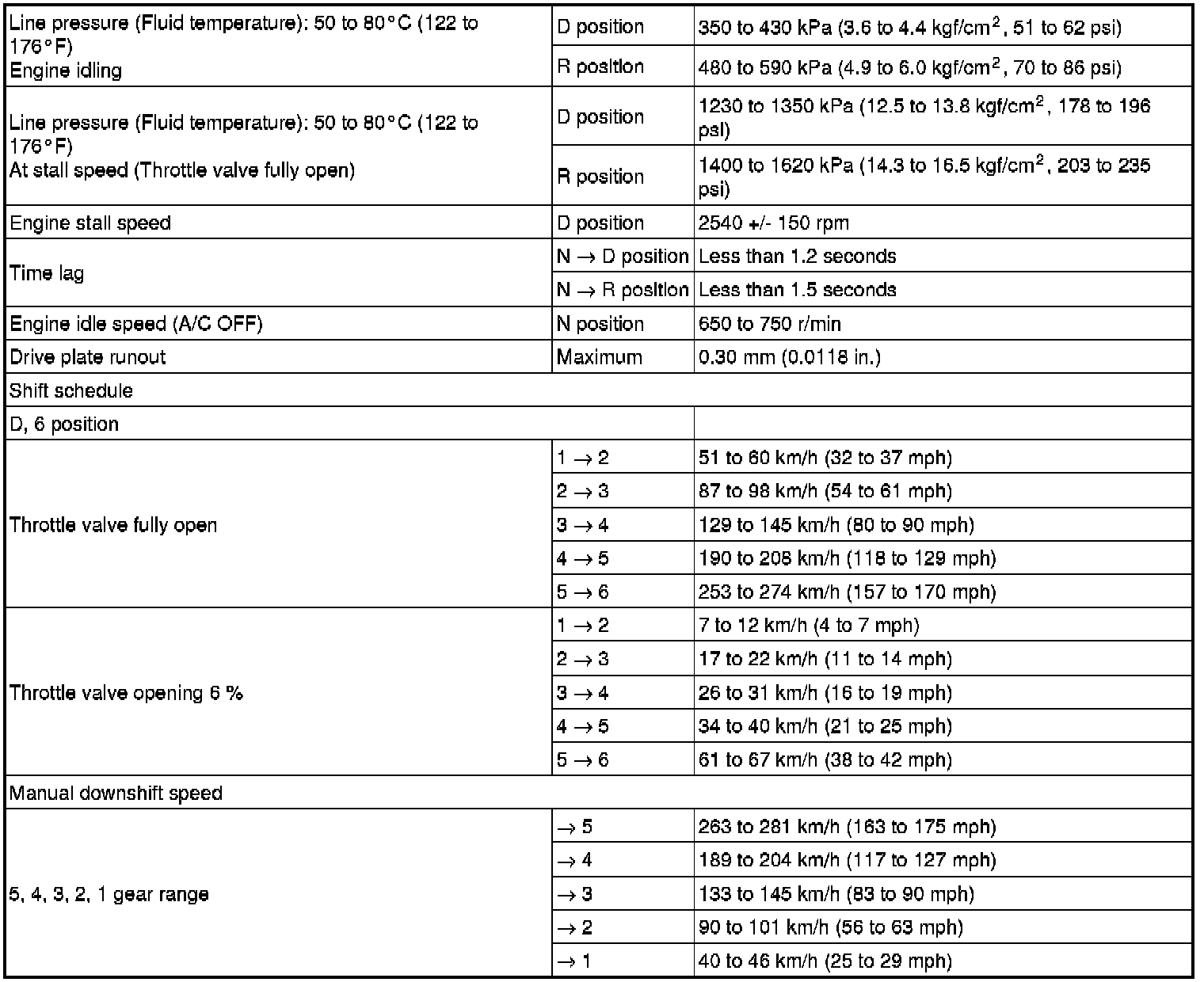 * All shift point values indicated in the above tables are actual values. Therefore, if checking a shift point with a chassis dynamometer, keep in mind that there is a range of error in the chassis dynamometer indication.