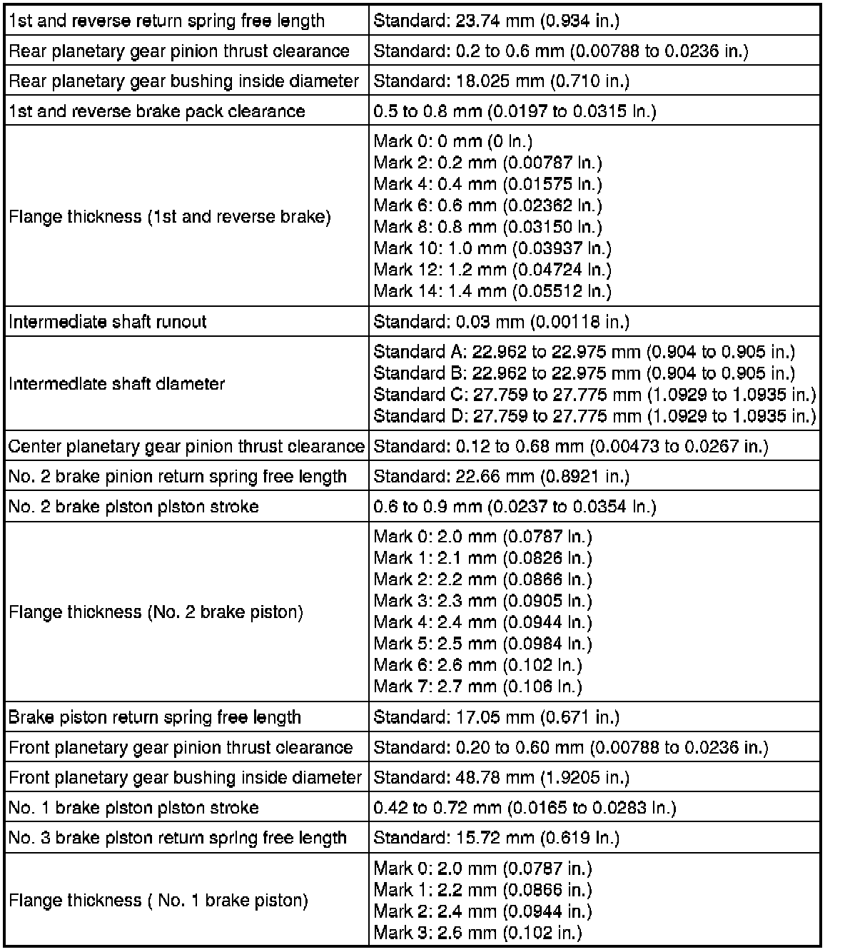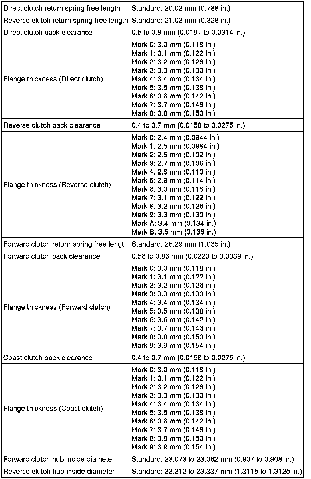 SPECIFICATIONS: A960E AUTOMATIC TRANSMISSION / TRANSAXLE: SERVICE DATA