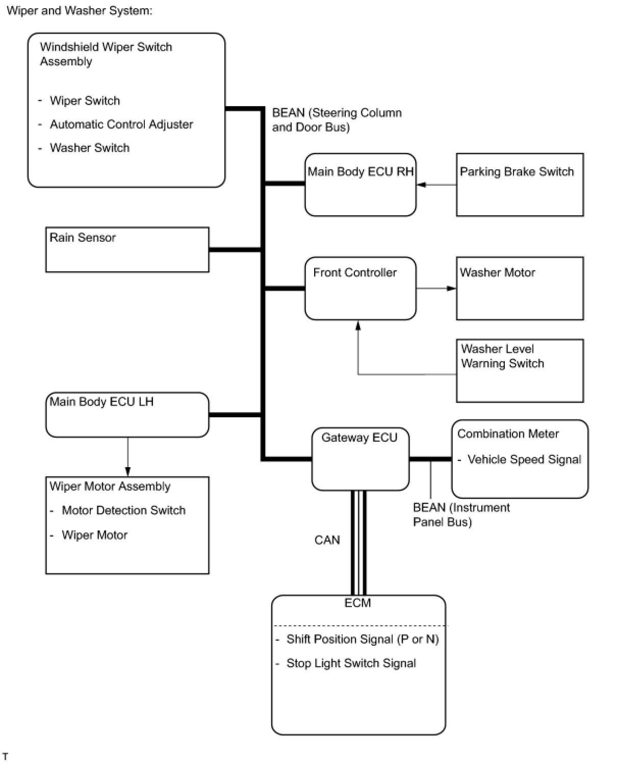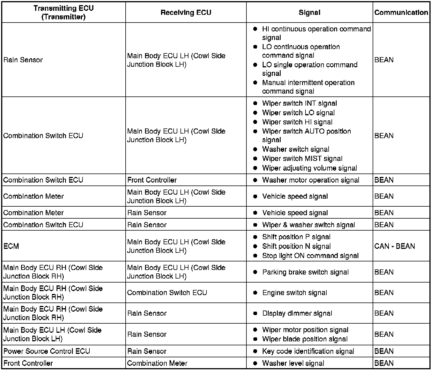 * The main body ECU LH adjusts the wiper timing based on commands from the rain sensor. These adjustments are based on vehicle speed and a determination of the vehicle driving and stopping conditions during automatic operation.