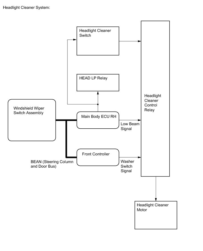 (c) Front wiper operation is based on the combination switch and other signals received by the main body ECU LH.