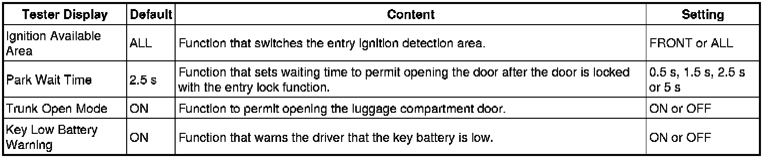 THEFT DETERRENT / KEYLESS ENTRY: SMART ACCESS SYSTEM WITH PUSH-BUTTON START (for Entry Function): CUSTOMIZE PARAMETERS