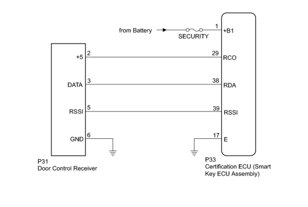 When the entry functions and wireless door lock functions do not operate, a malfunction or wave interference may be occurring in either of the following: 1) signal communication line between the door control receiver and certification ECU (smart key ECU assembly) (line is used for entry and wireless functions); or 2) electrical key transmitter.