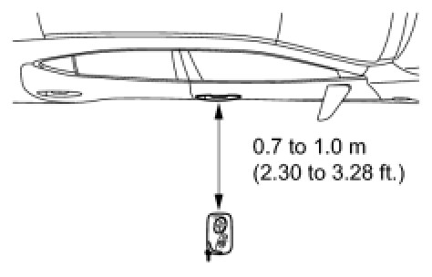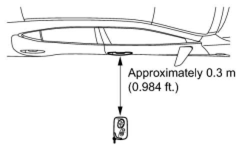 If the key is brought within 0.2 m (0.656 ft.) of the door outside handle assembly, communication is not possible.