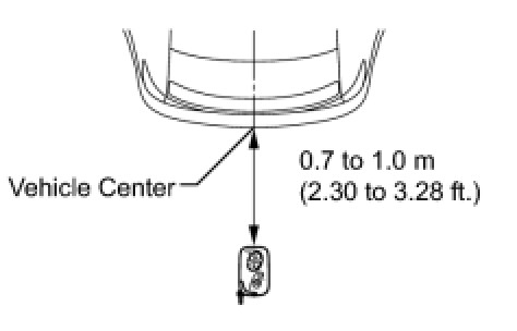 If the key is brought within 0.2 m (0.656 ft.) of the rear bumper, communication is not possible.