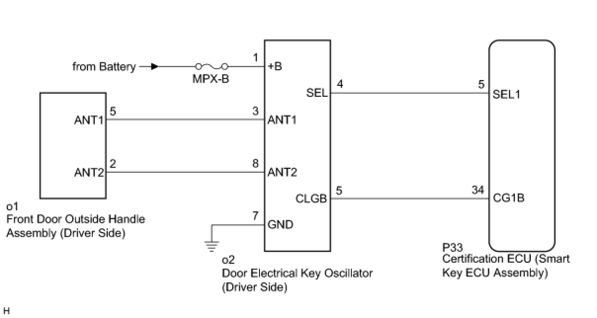 When the driver door entry lock and unlock functions do not operate, one of the following may be malfunctioning: 1) power door lock control system, 2) door electrical key oscillator (driver side), or 3) certification ECU (smart key ECU assembly).