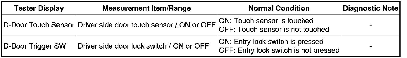2. READ VALUE USING TECHSTREAM (DOOR OUTSIDE HANDLE)