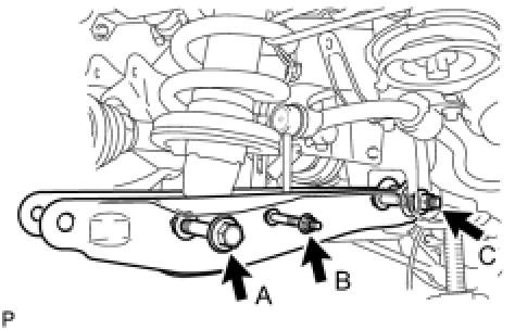 (a) Temporarily install the rear No. 2 suspension arm assembly to the rear suspension member with the bolt, nut (C), and washer.