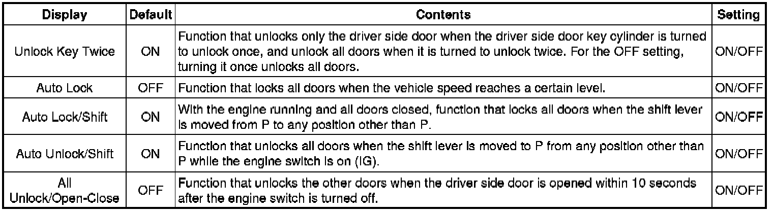 DOOR LOCK: POWER DOOR LOCK CONTROL SYSTEM: CUSTOMIZE PARAMETERS