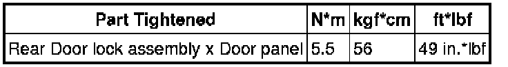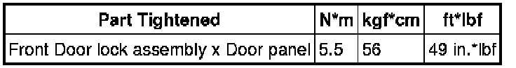 SPECIFICATIONS: DOOR LOCK: TORQUE SPECIFICATIONS