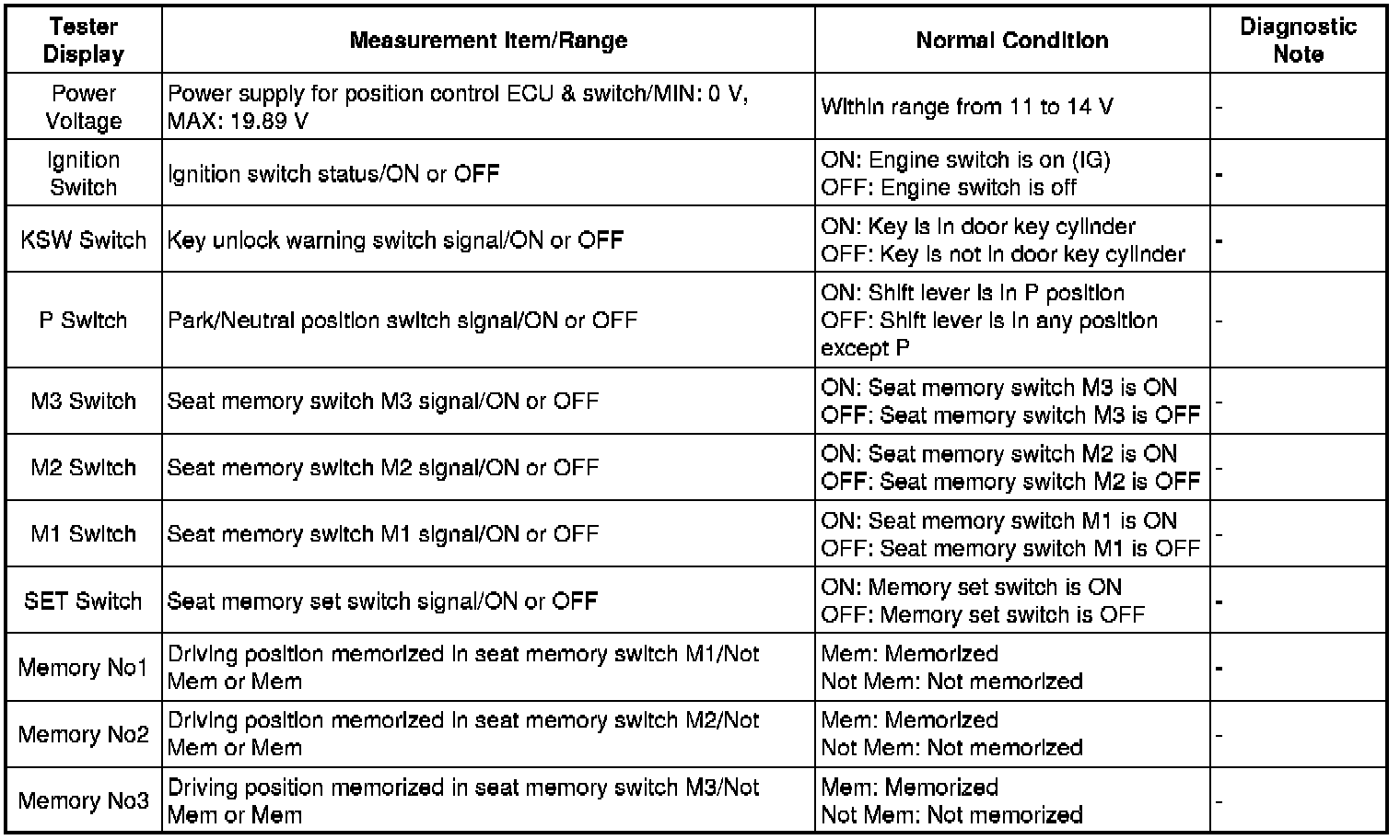 (e) Enter the following menus: Body Electrical / Driver Seat/Passenger Seat / Data List.