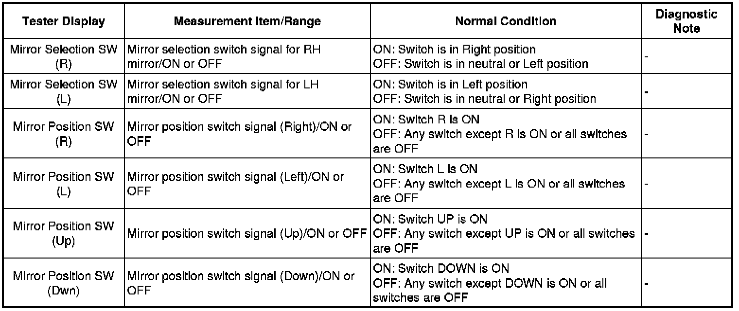 MIRROR (EXT): POWER MIRROR CONTROL SYSTEM: DATA LIST / ACTIVE TEST