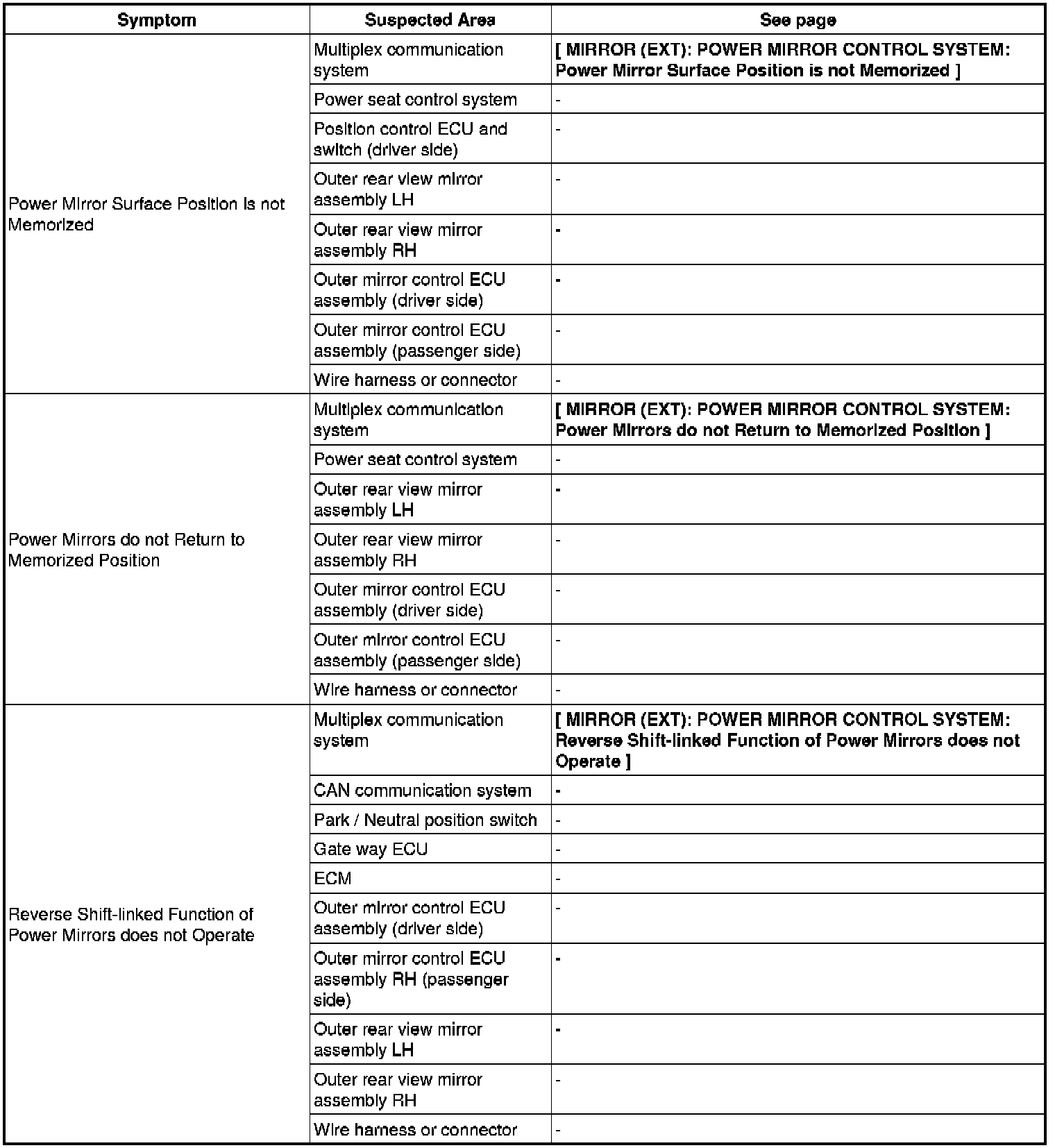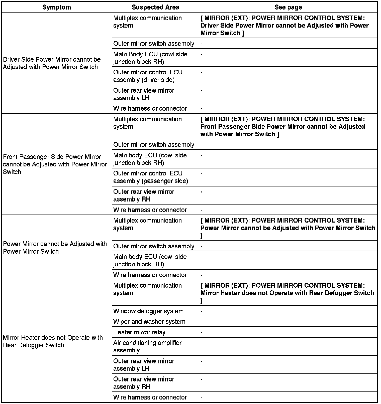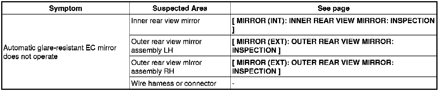 MIRROR (EXT): POWER MIRROR CONTROL SYSTEM: PROBLEM SYMPTOMS TABLE