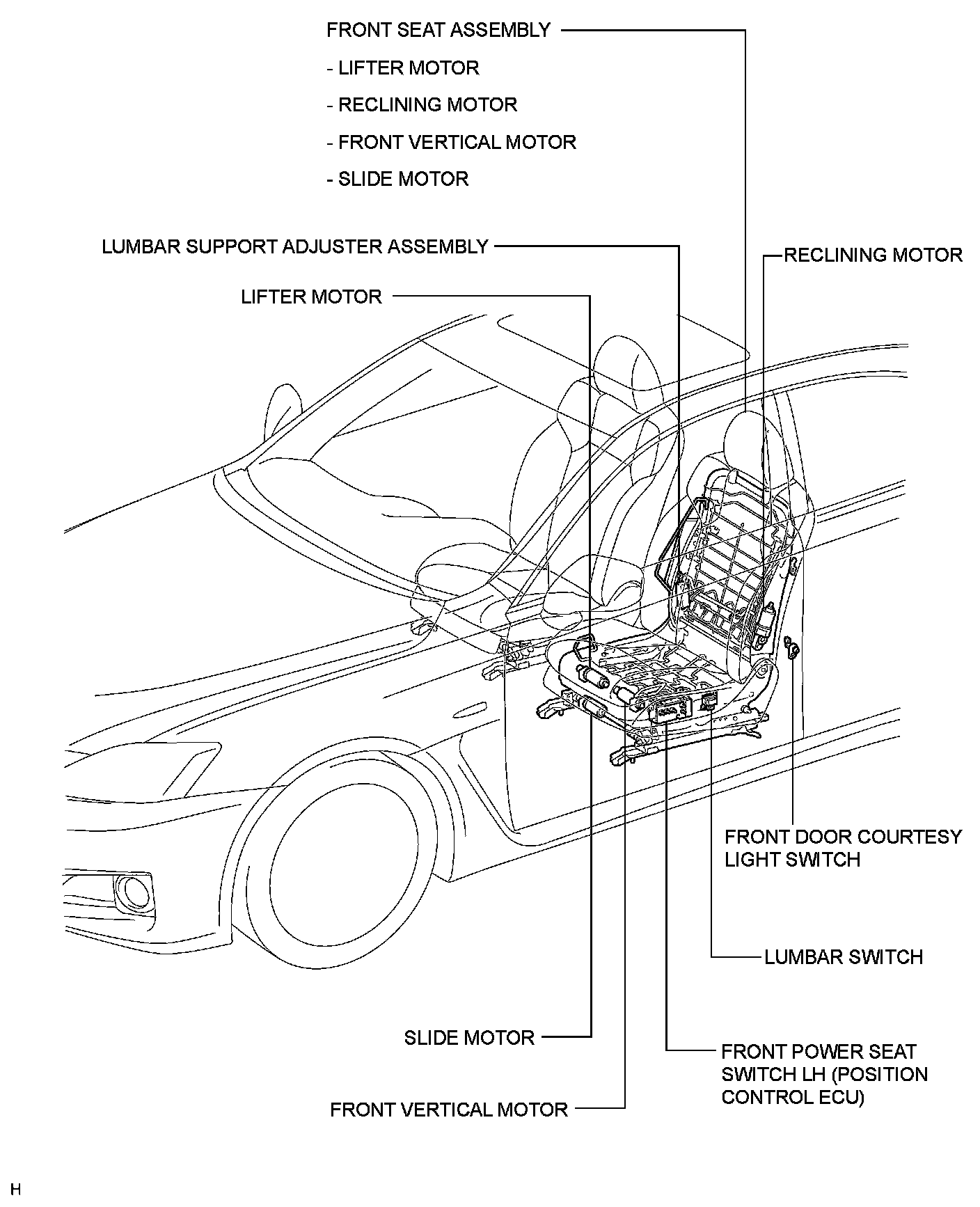 SEAT: FRONT POWER SEAT CONTROL SYSTEM: PARTS LOCATION