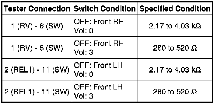 (1) Measure the resistance according to the value(s) in the table below.