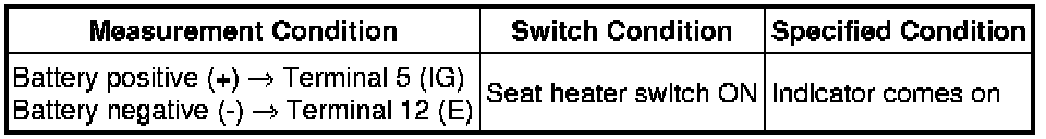 (b) Inspect seat heater switch indicator operation.