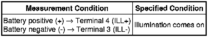 (1) Apply battery voltage and check operation of the switch, as shown in the table below.