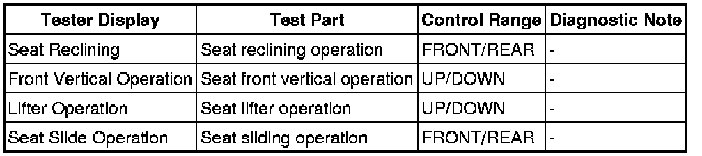 SEAT: FRONT POWER SEAT CONTROL SYSTEM: DATA LIST / ACTIVE TEST