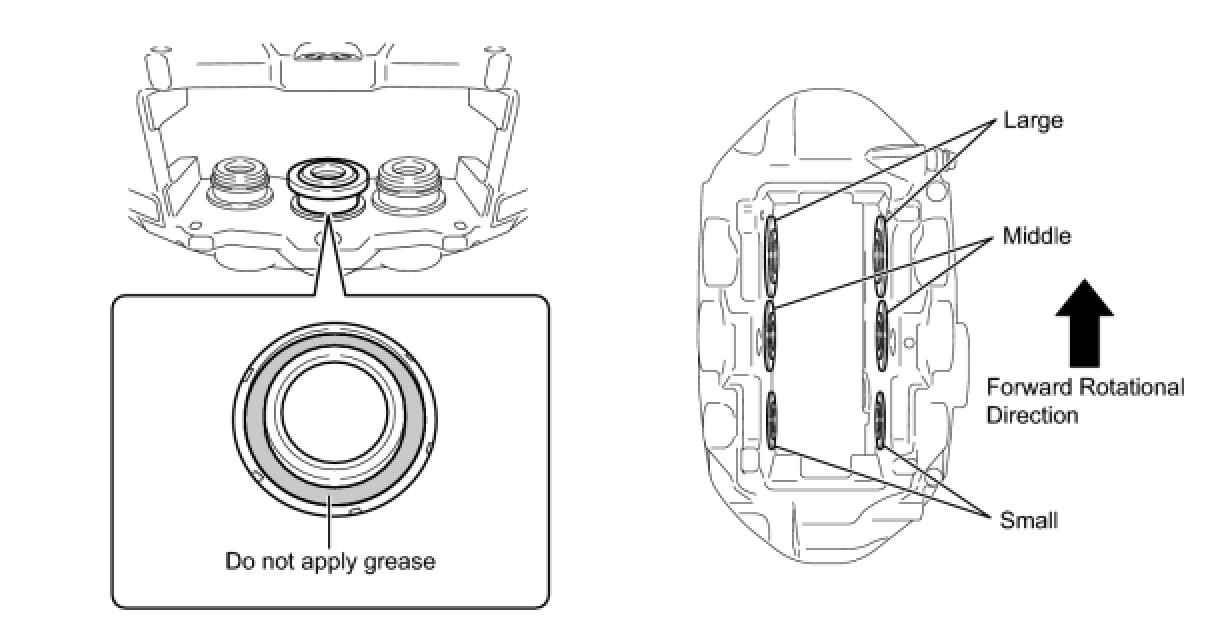 * Do not apply any grease to any part where the cylinder boot touches the rear disc brake cylinder assembly as shown in the illustration.