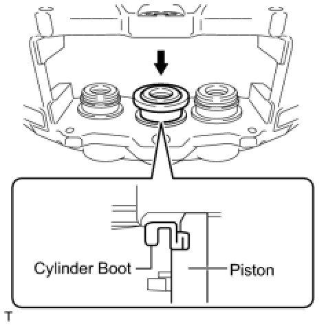 * Securely install the cylinder boot to the groove of the front disc brake cylinder assembly.