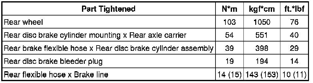 SPECIFICATIONS: BRAKE (REAR): TORQUE SPECIFICATIONS