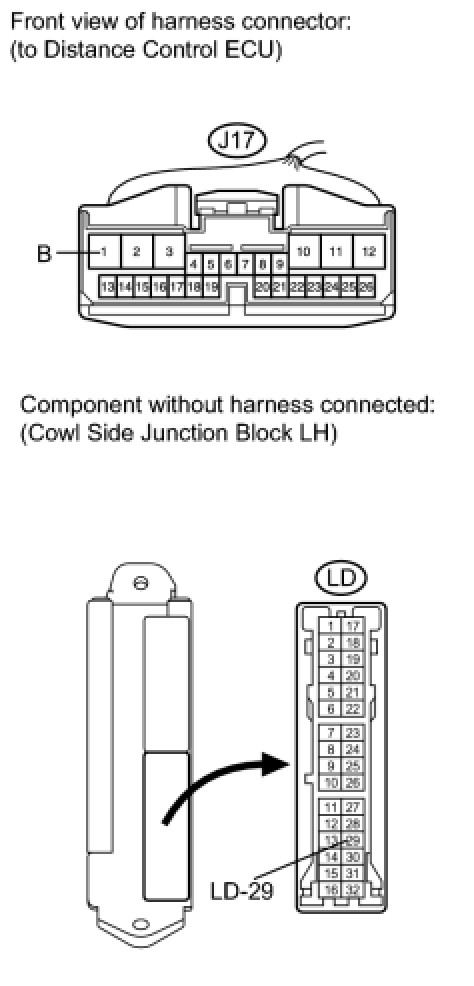 NG -- CHECK HARNESS AND CONNECTOR (DISTANCE CONTROL ECU - COWL SIDE JUNCTION BLOCK LH)