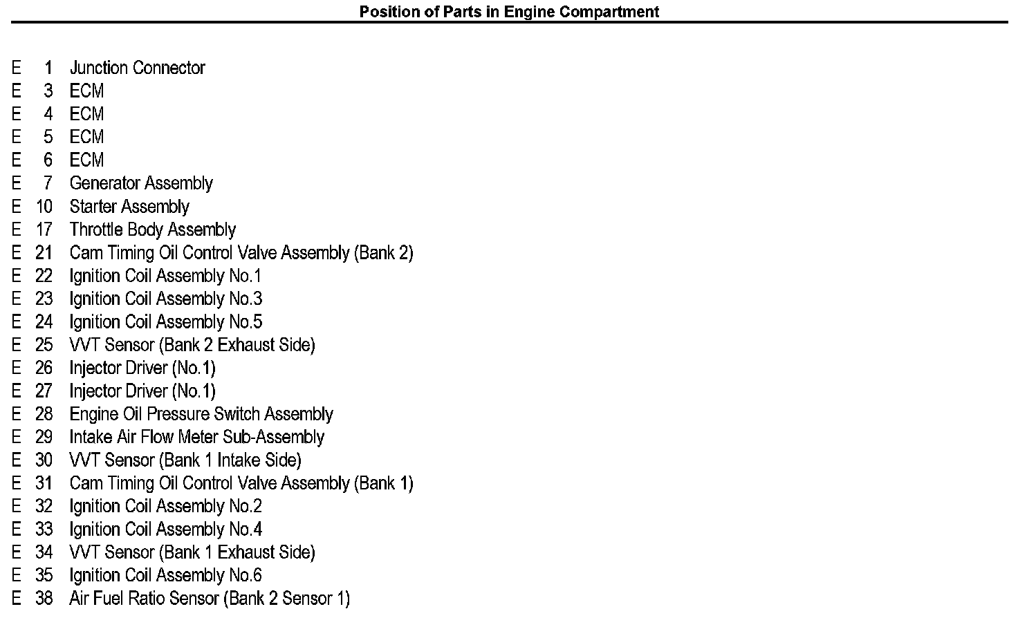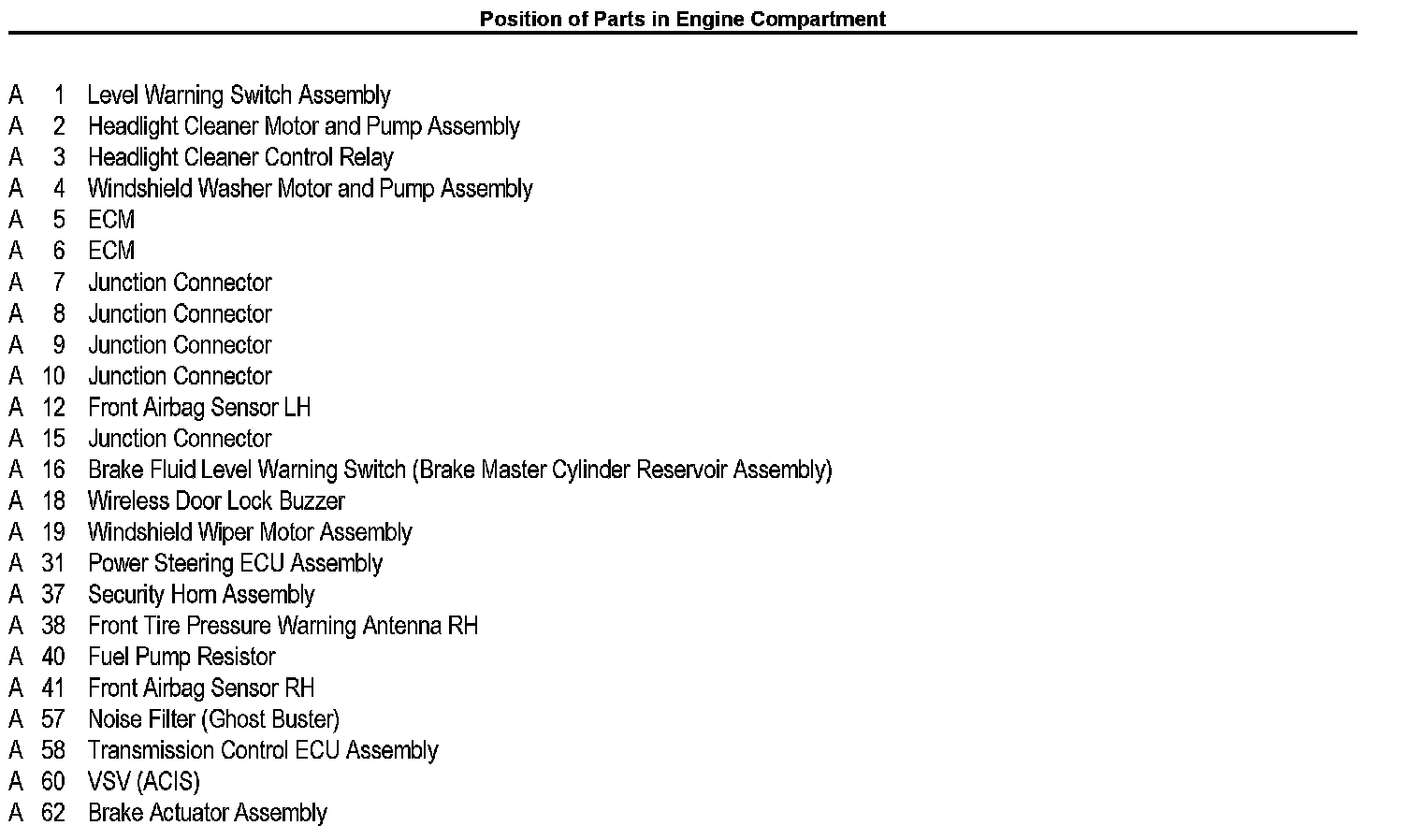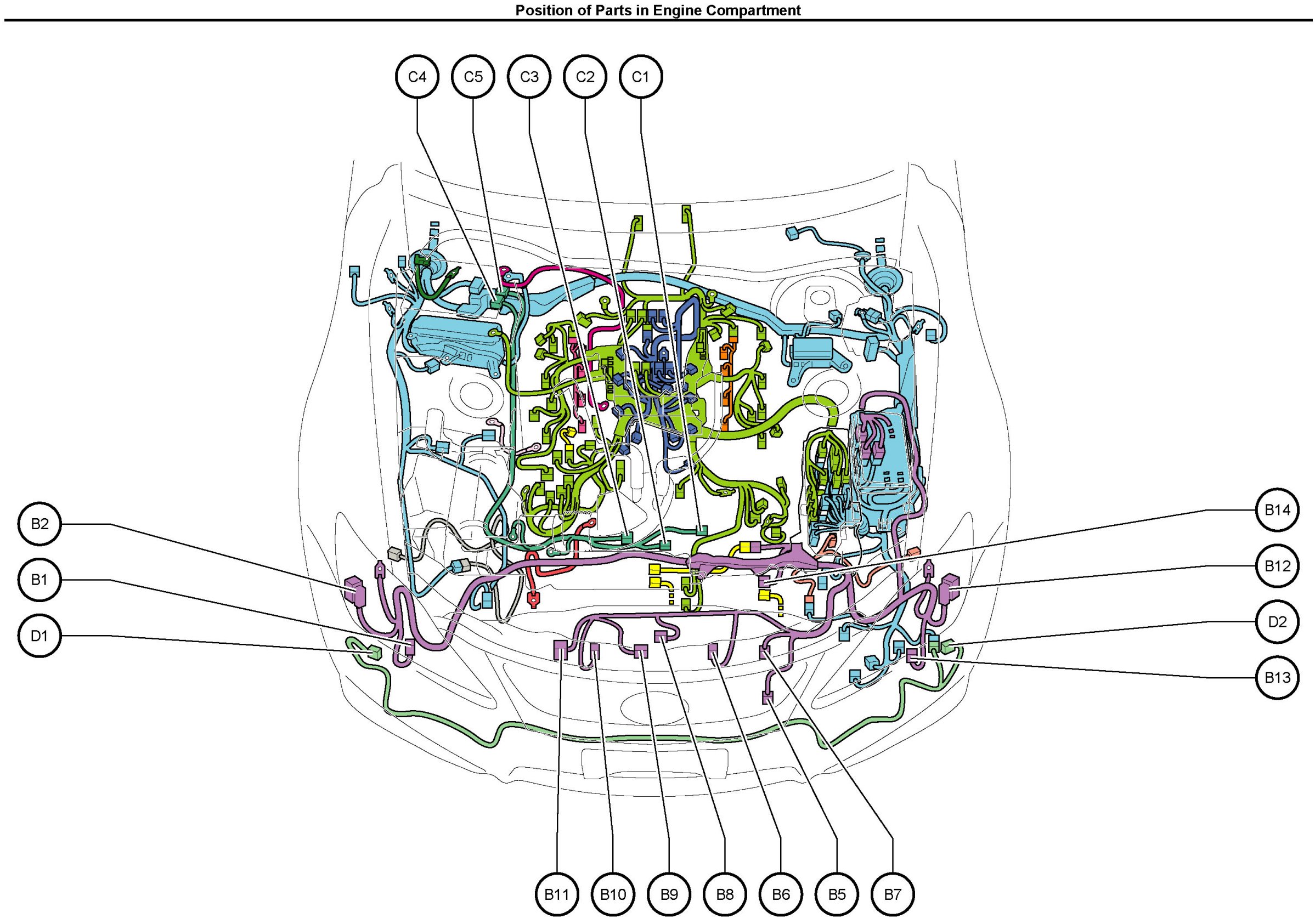Position of Parts In Engine Compartment