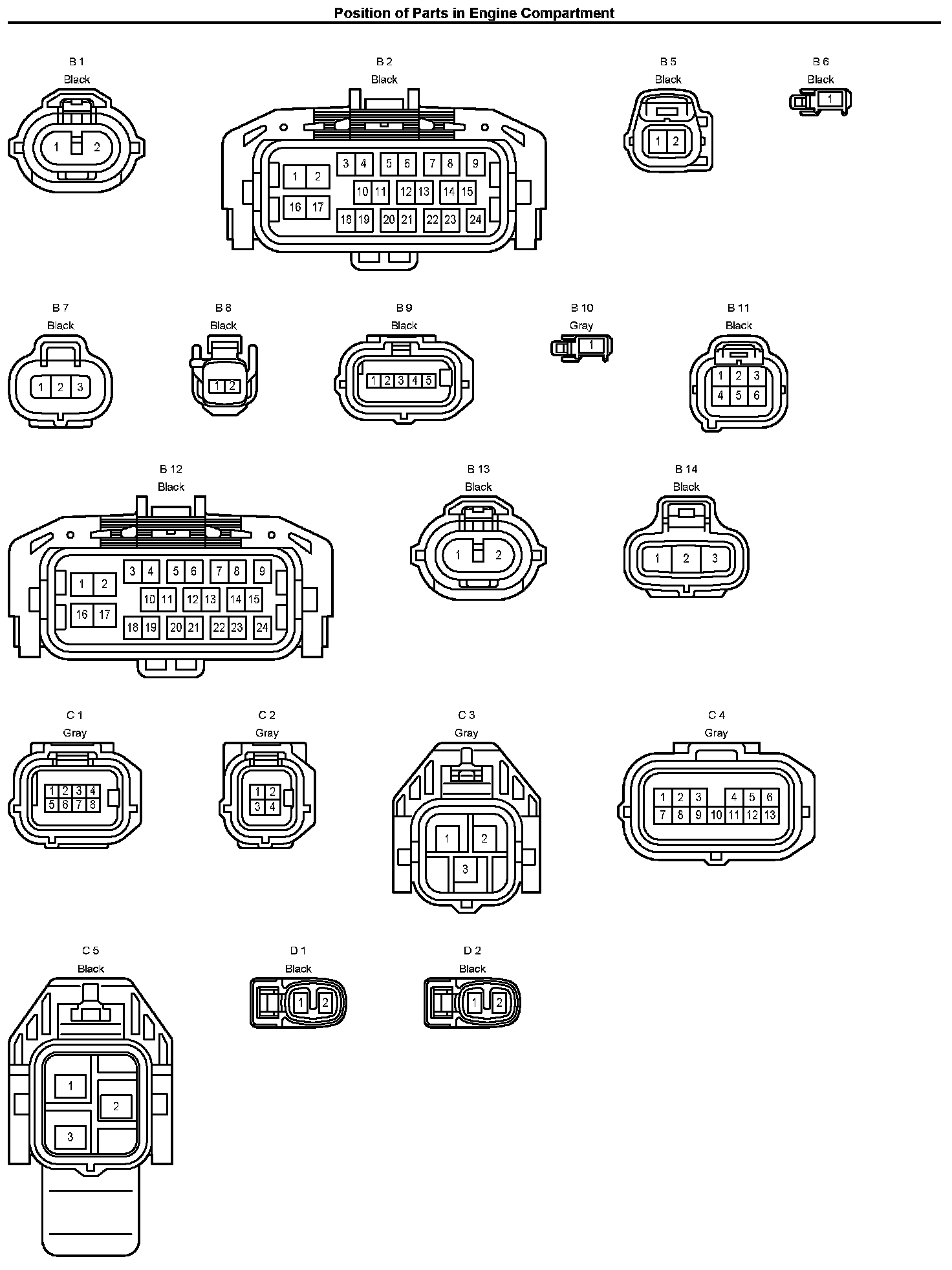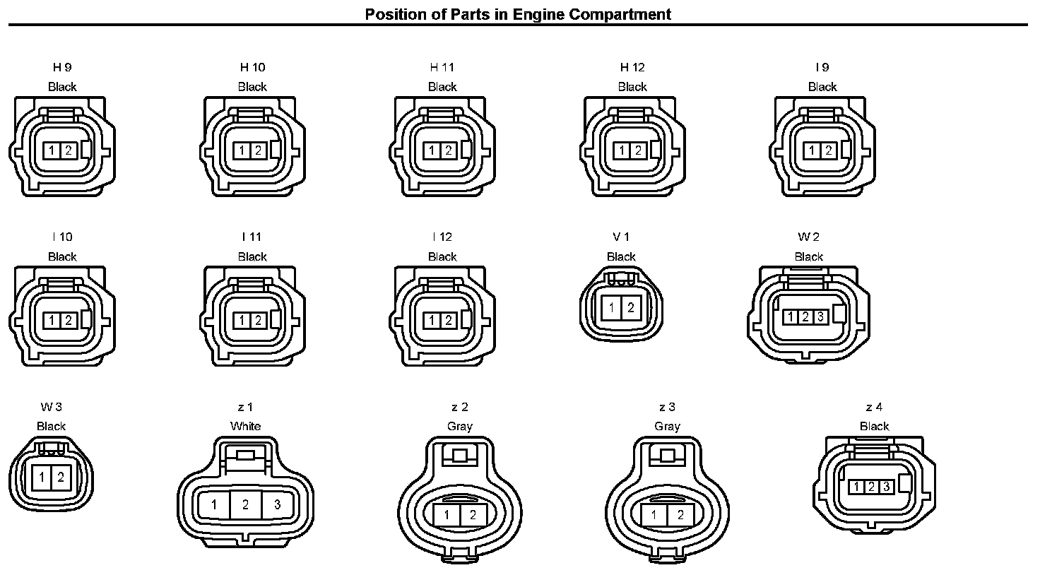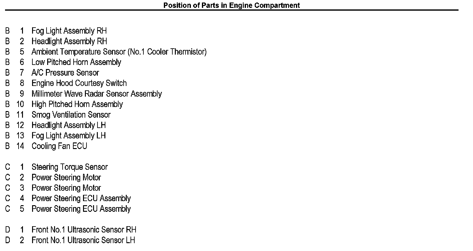 Position Of Parts In Engine Compartment: