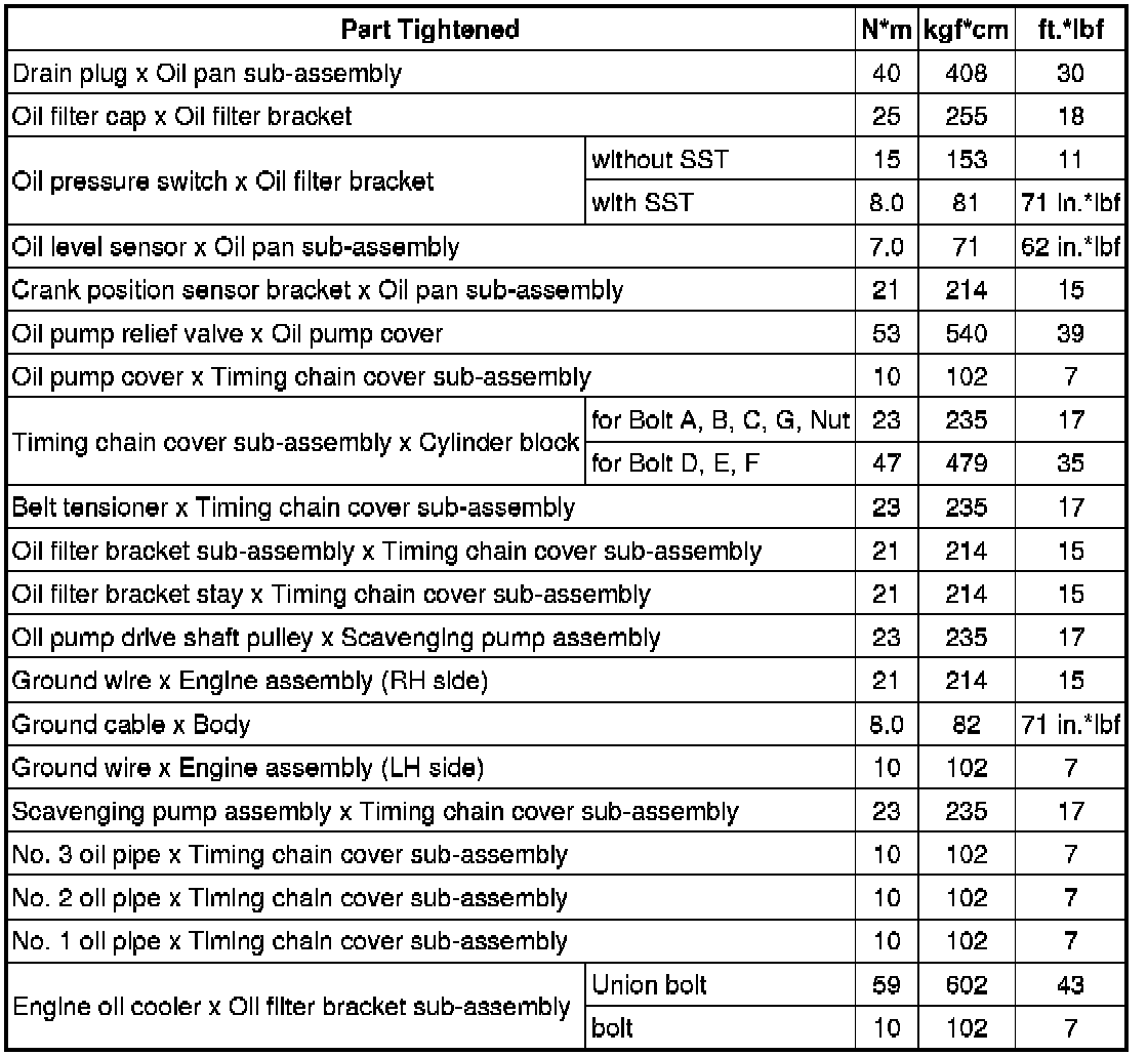 SPECIFICATIONS: 2UR-GSE LUBRICATION: TORQUE SPECIFICATIONS