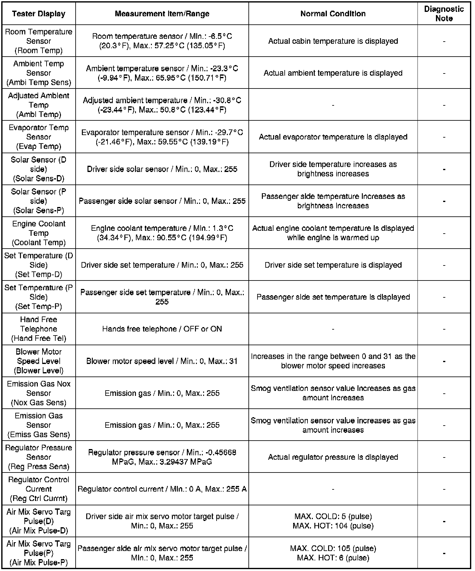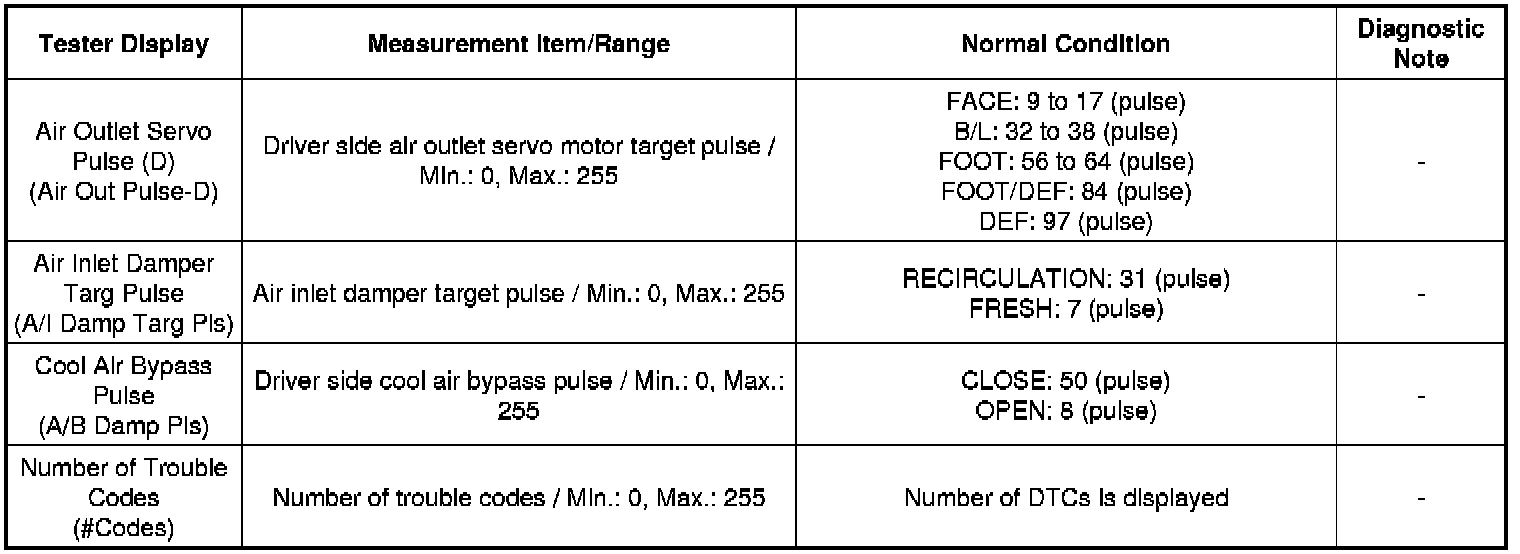 (1) for Air Conditioner: Body Electrical / Air Conditioner / Data List.