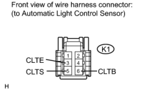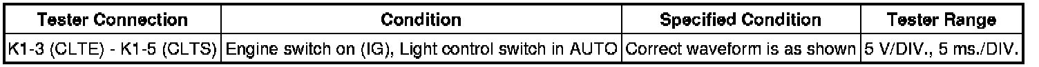 (e) Check the waveform of the K1 automatic light control sensor connector.