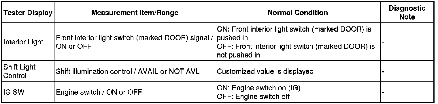 LIGHTING (INT): LIGHTING SYSTEM: DATA LIST / ACTIVE TEST