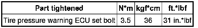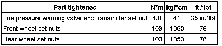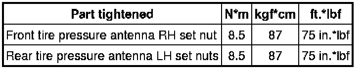 SPECIFICATIONS: TIRE PRESSURE MONITORING: TORQUE SPECIFICATIONS