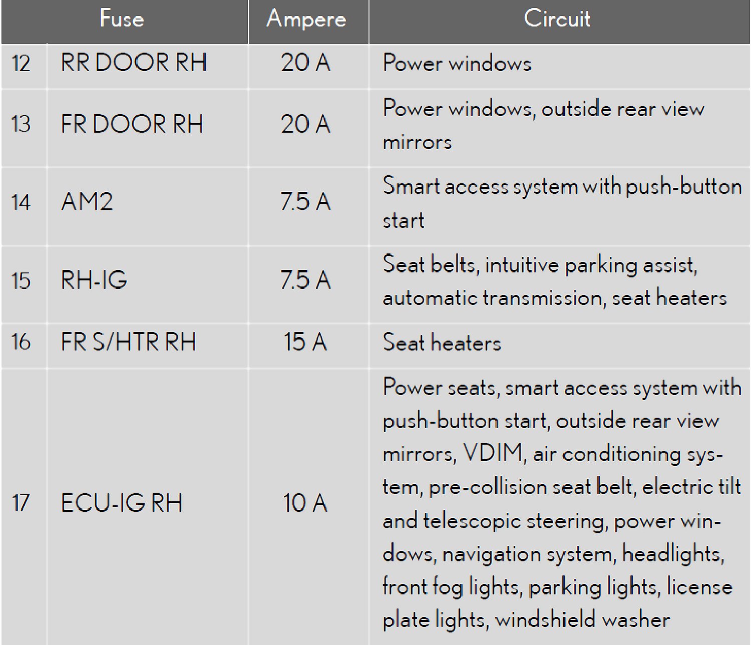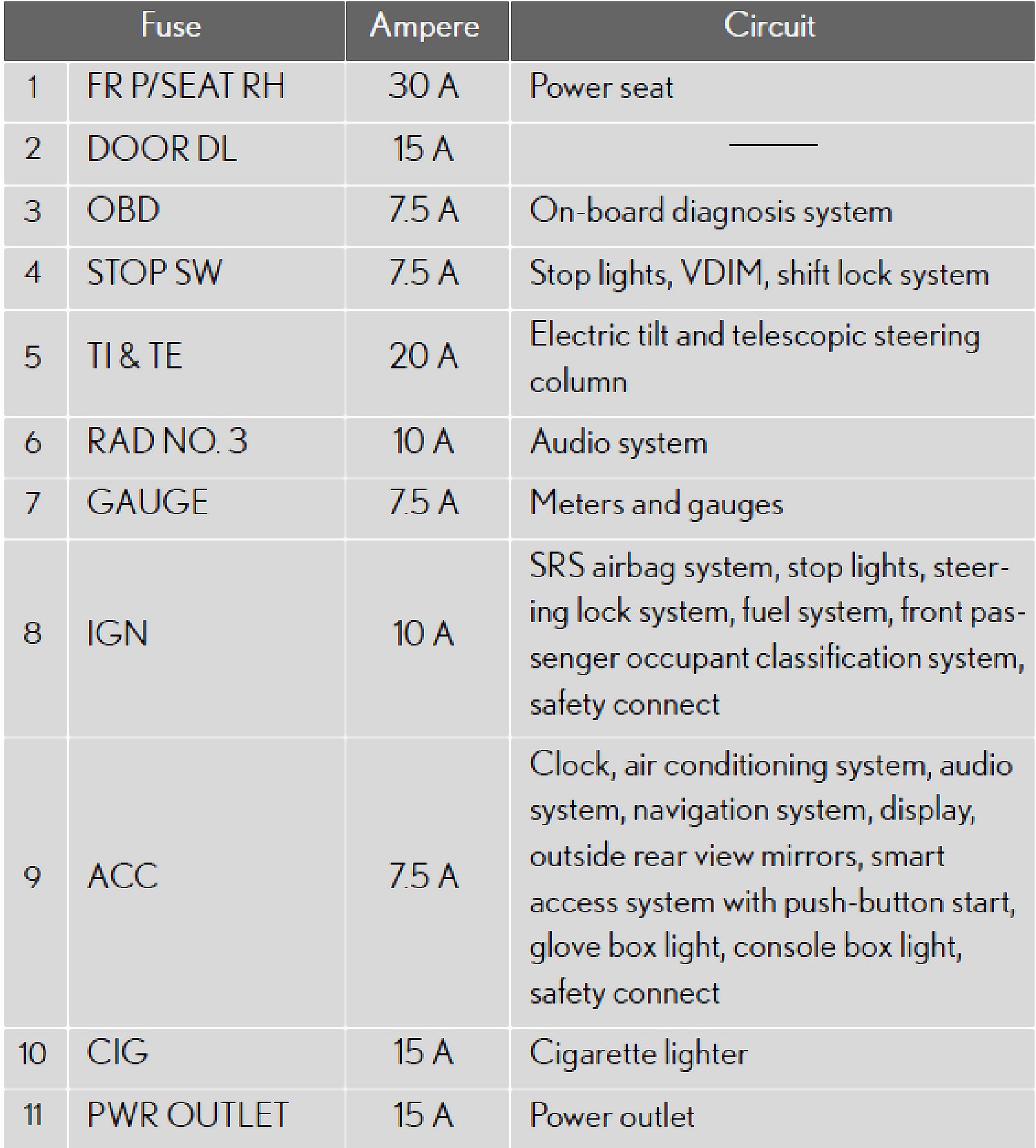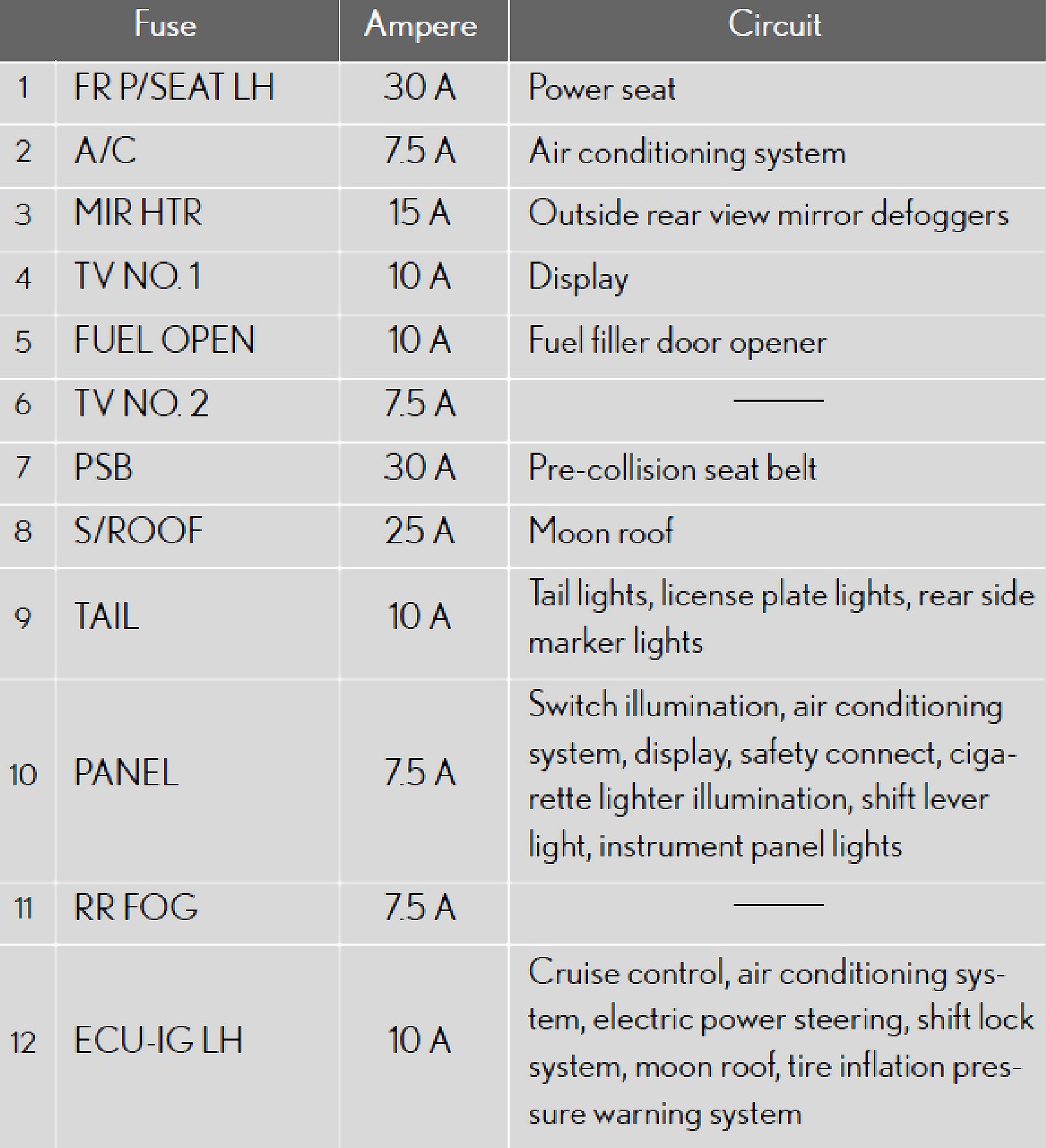 Fuse Location - Passenger Side Instrument Panel: