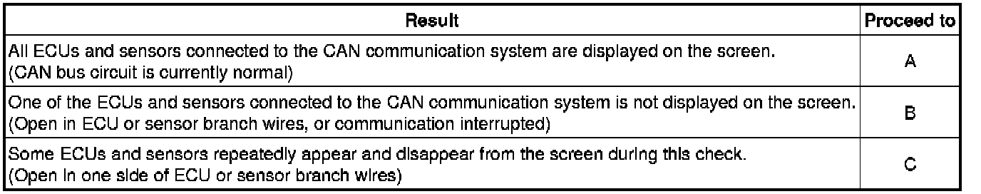 * Sometimes CAN communication system DTCs are output, but all the ECUs and sensors connected to the CAN communication system are displayed on the Techstream. In this case, previous or history DTCs may indicate the cause of the problem.