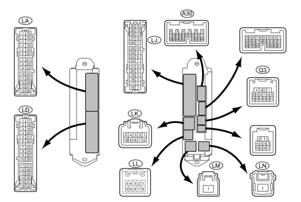 (a) Disconnect the main body ECU LH (cowl side junction block LH) connectors.