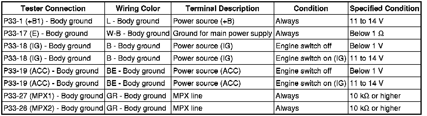 5. CHECK MULTIPLEX NETWORK MASTER SWITCH
