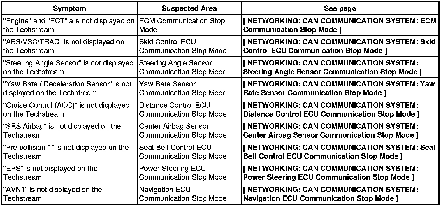 NETWORKING: CAN COMMUNICATION SYSTEM: PROBLEM SYMPTOMS TABLE