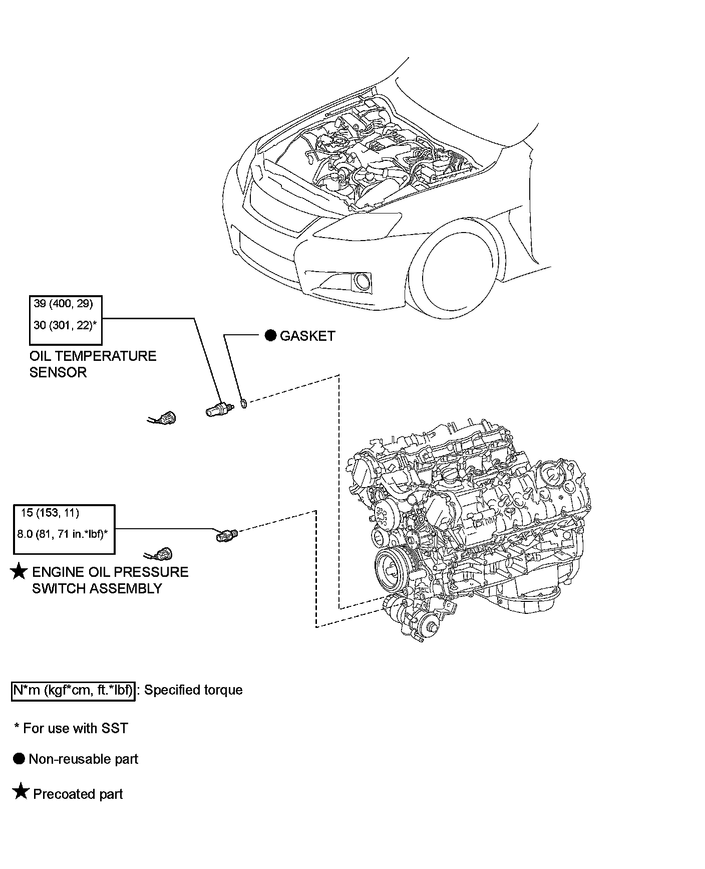 2UR-GSE ENGINE CONTROL: ENGINE OIL TEMPERATURE SENSOR: COMPONENTS