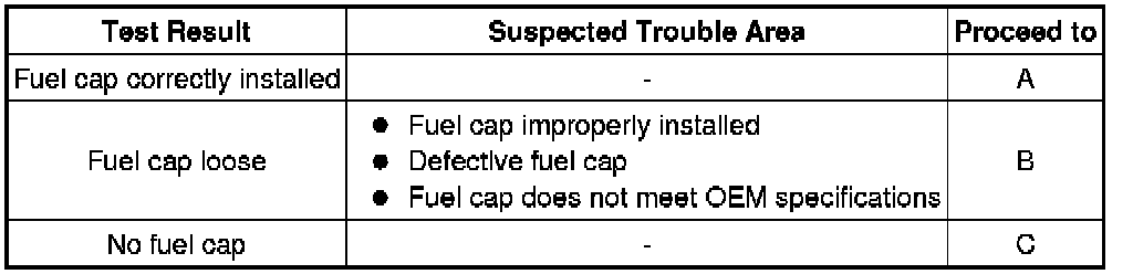B -- CORRECTLY REINSTALL OR REPLACE FUEL CAP ASSEMBLY