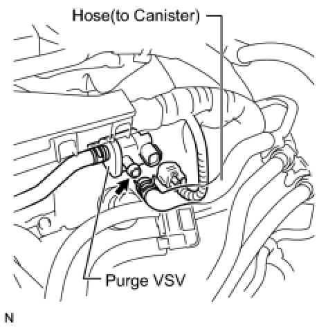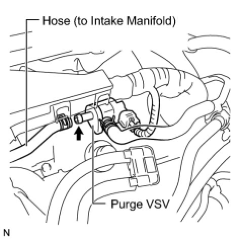 (b) Disconnect the hose (connected to the intake manifold) from the purge VSV.