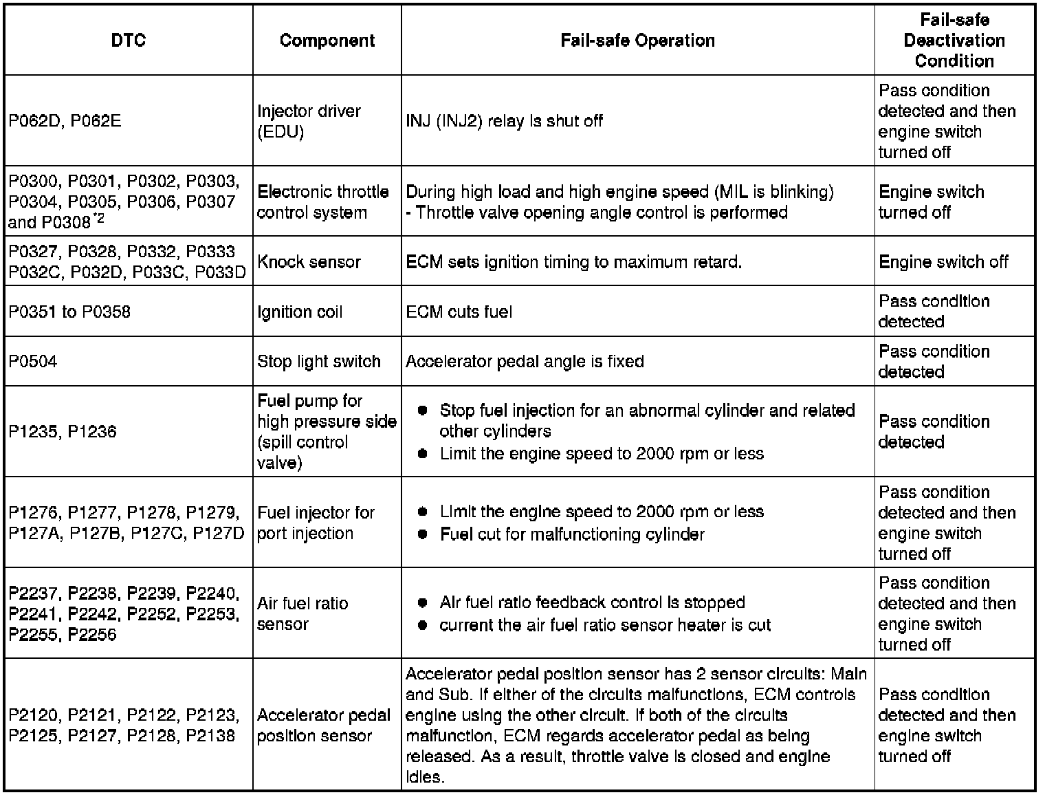 *2: Misfire related fail-safe operations occur when catalyst overheat malfunctions occur.