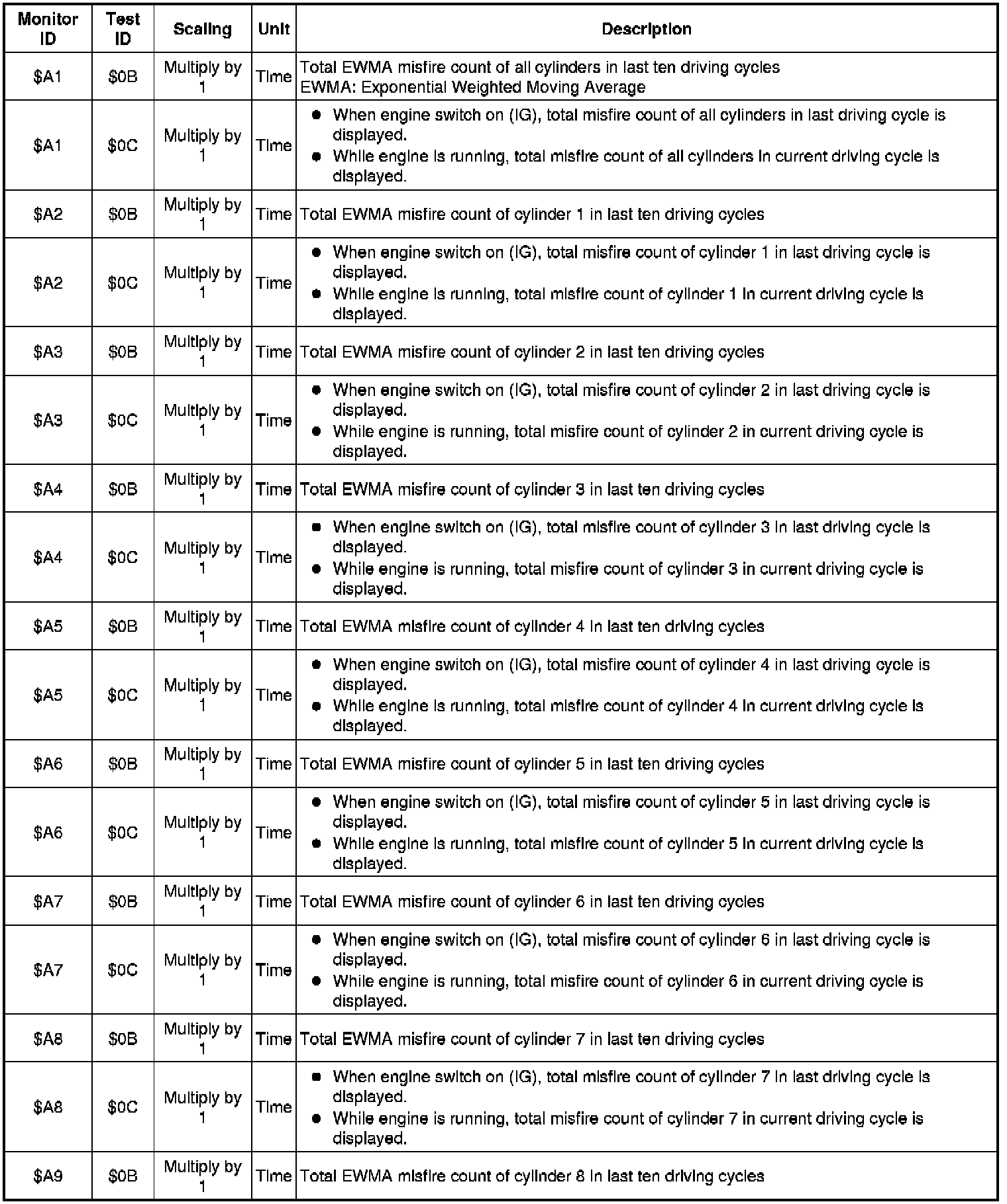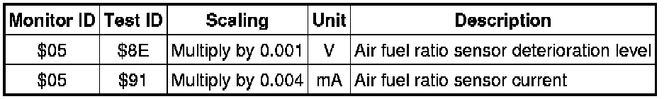 If you use a generic scan tool, multiply the value by the scaling value listed below.