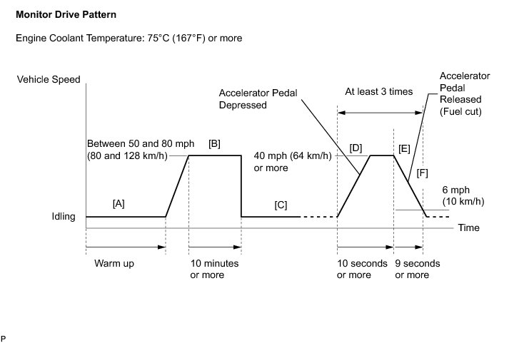 (6) Drive the vehicle at between 50 mph (80 km/h) and 80 mph (128 km/h) for at least 10 minutes [B].