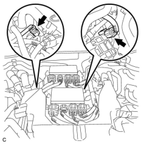(c) Disconnect the 4 connectors with wire harness locks from the 2 injector drivers.